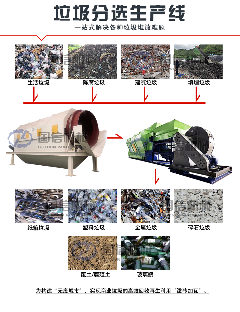 • 裝修垃圾分選方案主要是由給料系統(tǒng)、篩選系統(tǒng)、分揀系統(tǒng)、粉碎系統(tǒng)等組成。整套生產(chǎn)線采用自動分揀,節(jié)省人...